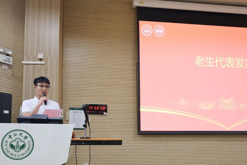 学院2025级本科新生代表林恺欣同学首先回顾了入学以来的温暖瞬间,表达对学院师长与同学的感谢。接着,他分享了军训的收获与感悟,表示军训既是履行国防义务,也是收获友谊与成长的旅程。并代表全体新生承诺:将践行“博学、审问、慎思、明辨、笃行”的校训精神,在中大软工这片沃土上共同成长、共绘精彩。