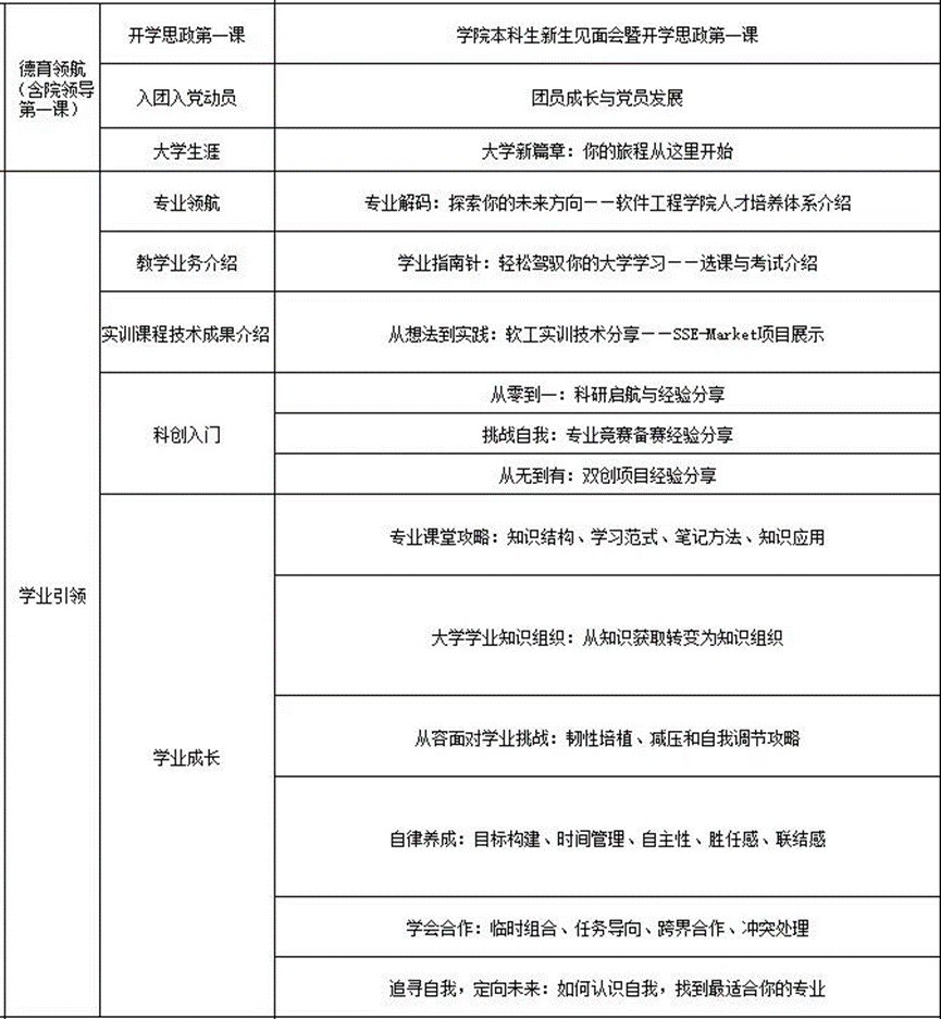 为帮助2025级新生认识、了解、喜爱学校与学院,学院将依托“全员育人”工作机制,系统组织五大主题共20余场新生入学教育活动,通过专题讲座、笃行沙龙、实训项目汇报展示等形式,为同学们提供全方位的入学导览。